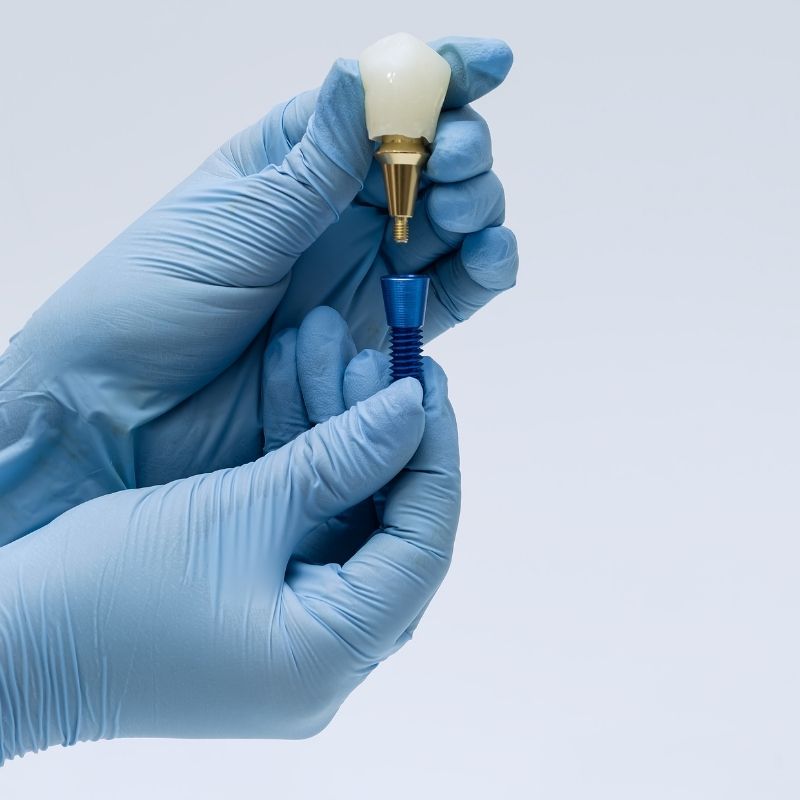 - An abutment that connects the implant to the crown